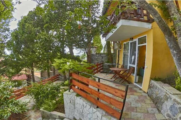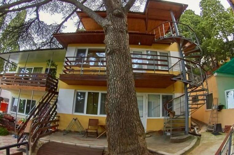 Домовладение «Кипарисовый Рай» находится почти на берегу моря, рядом с пляжем «Зелёный Мыс». Домовладение построено в классическом стиле и прекрасно смотрится в окружении зелени.
